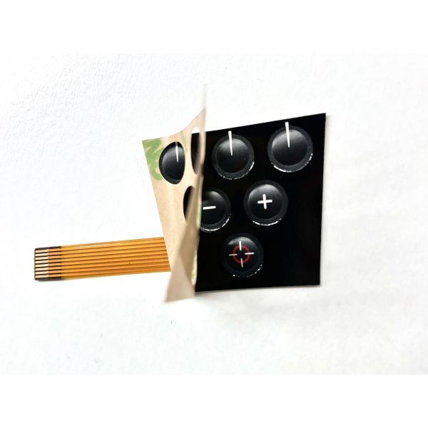 The membrane switch is made of a thin, flexible, and durable material, often a polyester or polyethylene-based film, that can withstand regular use and environmental conditions.